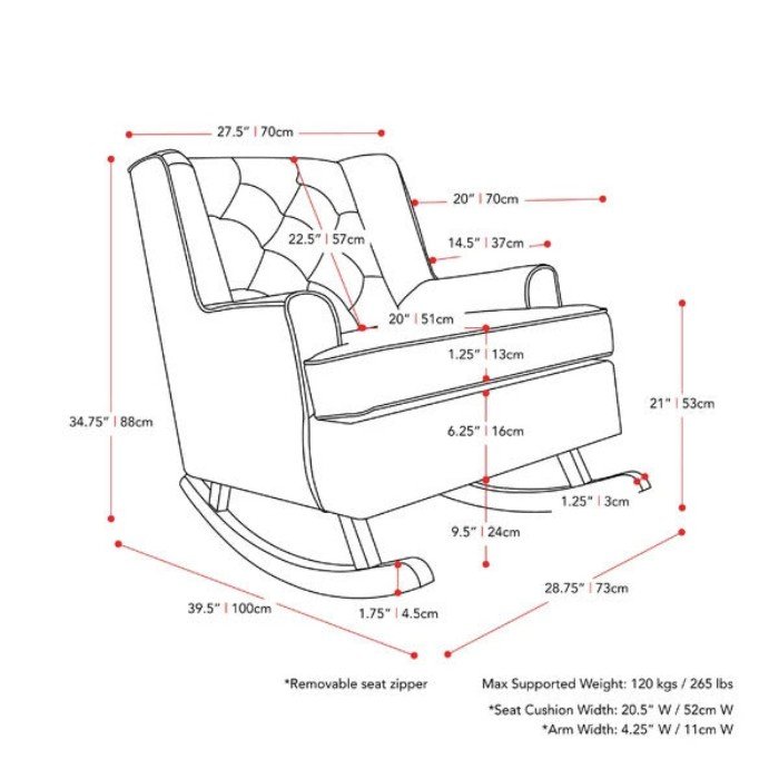 - Seat: 21” H x 20.5” W x 20” D