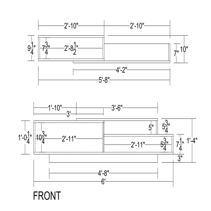 Wall mount shelf size 68” W x 10” H x 14” D